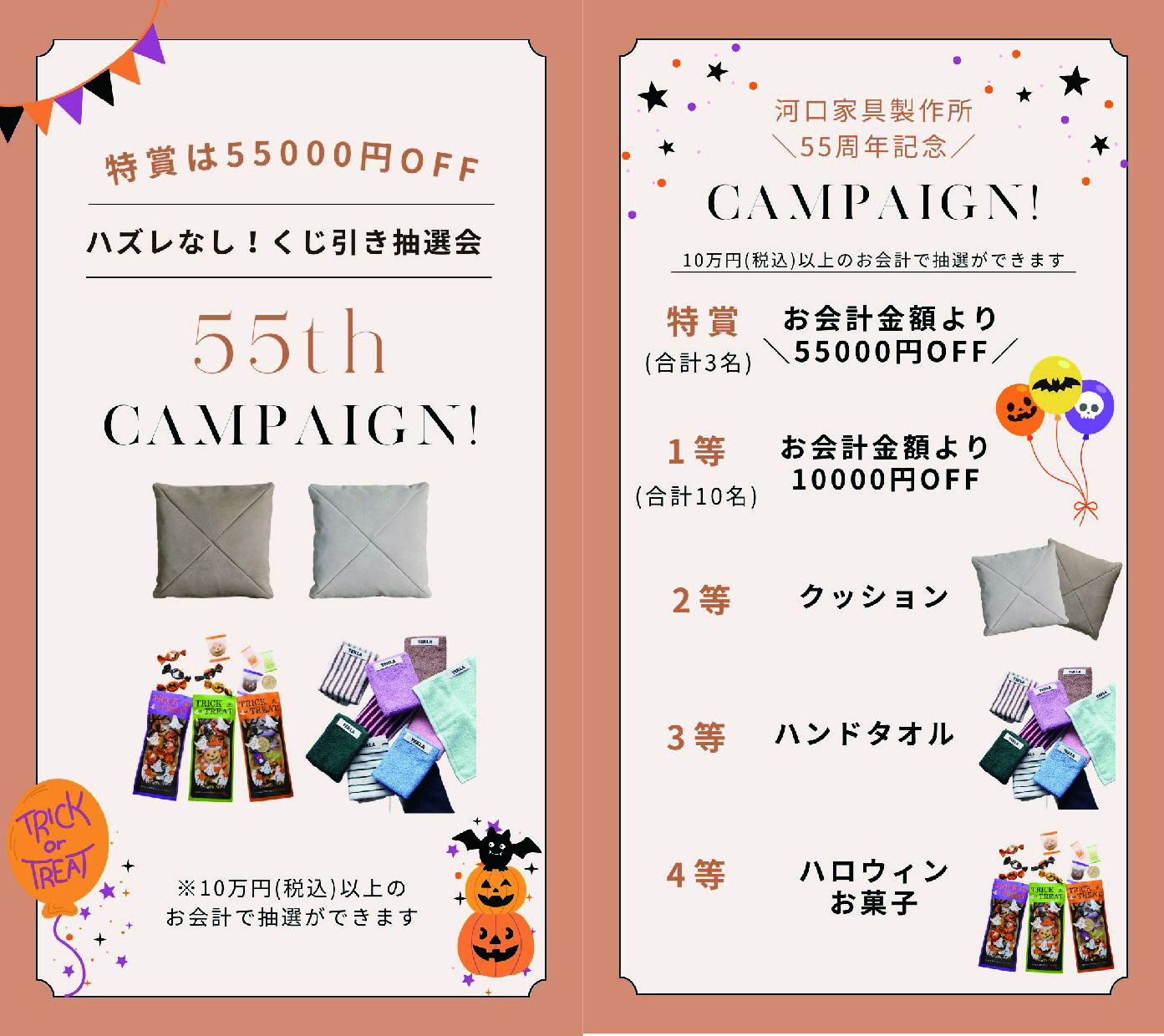 ・創業55周年を記念し、【10万円以上ご購入の方限定】で抽選会も実施いたします