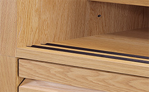 棚受ダボには、丈夫な8mmダボを使用し、棚板の移動も可能です。